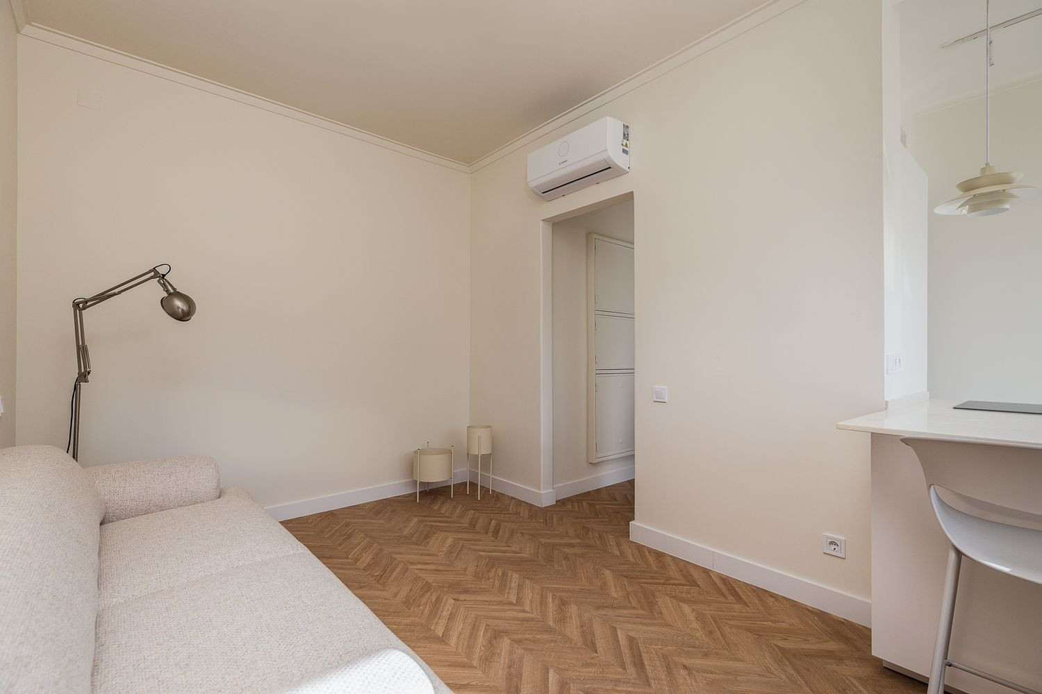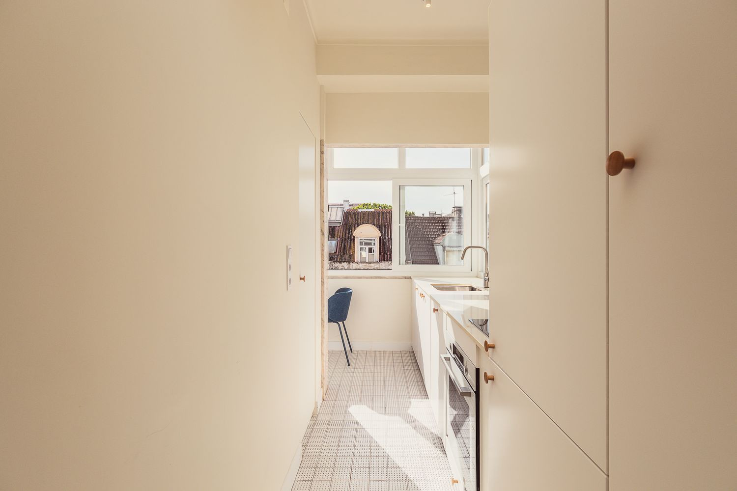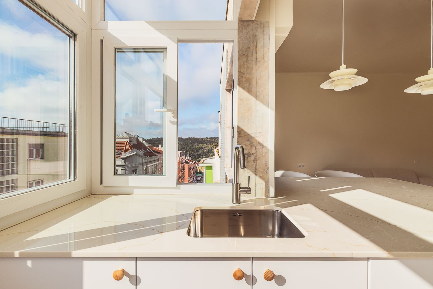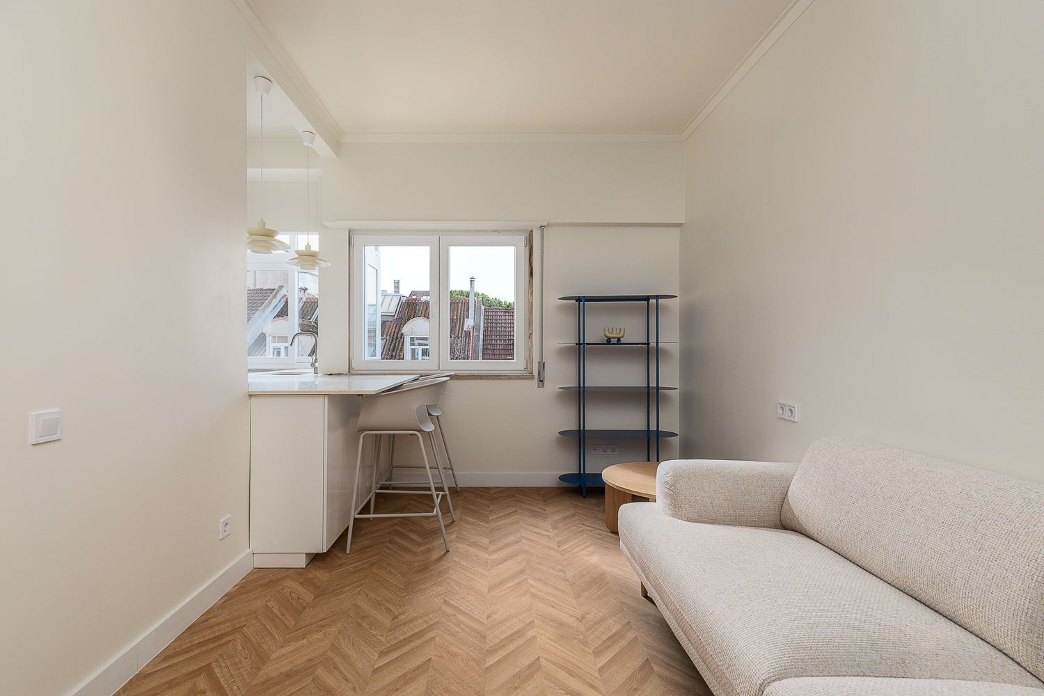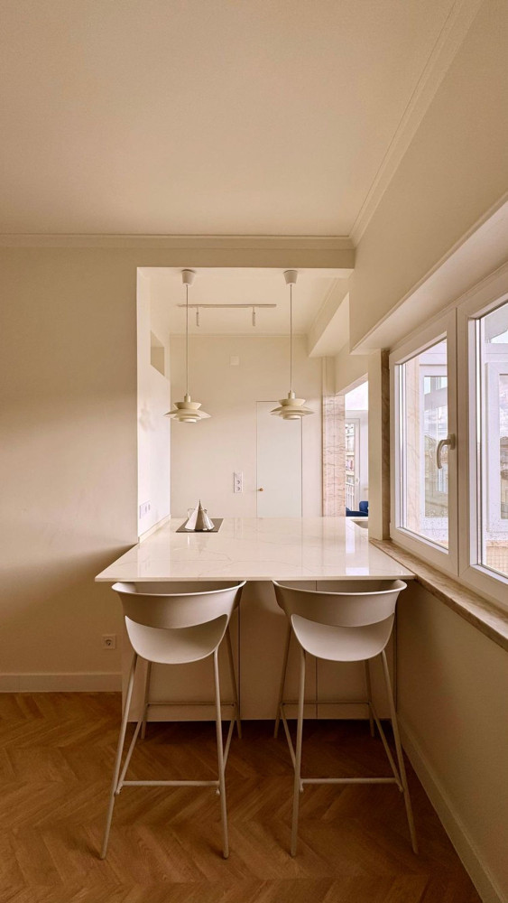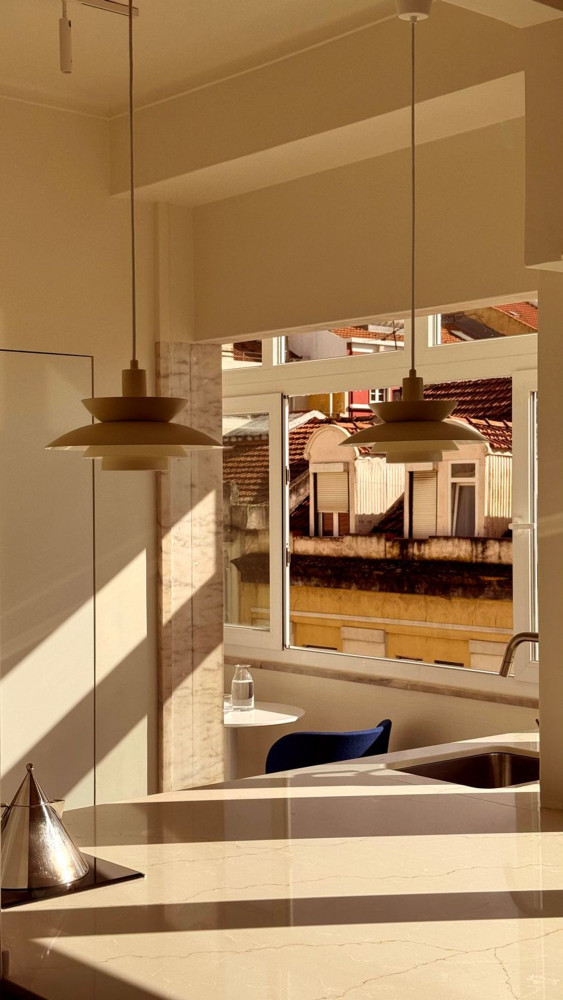 Campo de Ourique — light, charm and a premium location. Fully renovated 2-bedroom apartment with excellent sun exposure and interiors filled with natural light, set on one of the most central yet peaceful streets of Campo de Ourique. Located on the top floor of the building, but not under the roof — there is a technical floor above ensuring additional thermal and acoustic comfort. The apartment has a 6m² storage room. The open-space living room with a fully equipped modern kitchen stands out for its charming view over the neighborhood’s rooftops and its thoughtful design, where every detail was conceived to create a welcoming and functional atmosphere. The apartment is perfectly distributed between living, working, and resting areas — ideal both for living and for working from home or hosting friends. The building has an elevator. Just a few minutes from Lycée Français Charles Lepierre, Redbridge School, and the Campo de Ourique Market, surrounded by cafés, restaurants, and shops. A highly sought-after residential area with a unique energy and the typical Lisbon charm. A perfect choice for those seeking quality of life in the heart of the city — or a safe investment in one of the most valued areas of the capital.